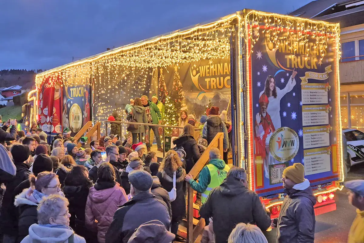 An drei Adventswochenenden rollte der festlich beleuchtete 40-Tonnen-Truck durch zahlreiche Hochwalddörfer. Mit an Bord: der Nikolaus, sein Weihnachtsengel, viele engagierte Helferinnen und Helfer des WVW – und insgesamt 1.500 liebevoll gepackte Geschenktüten, die an die Kinder verteilt wurden.